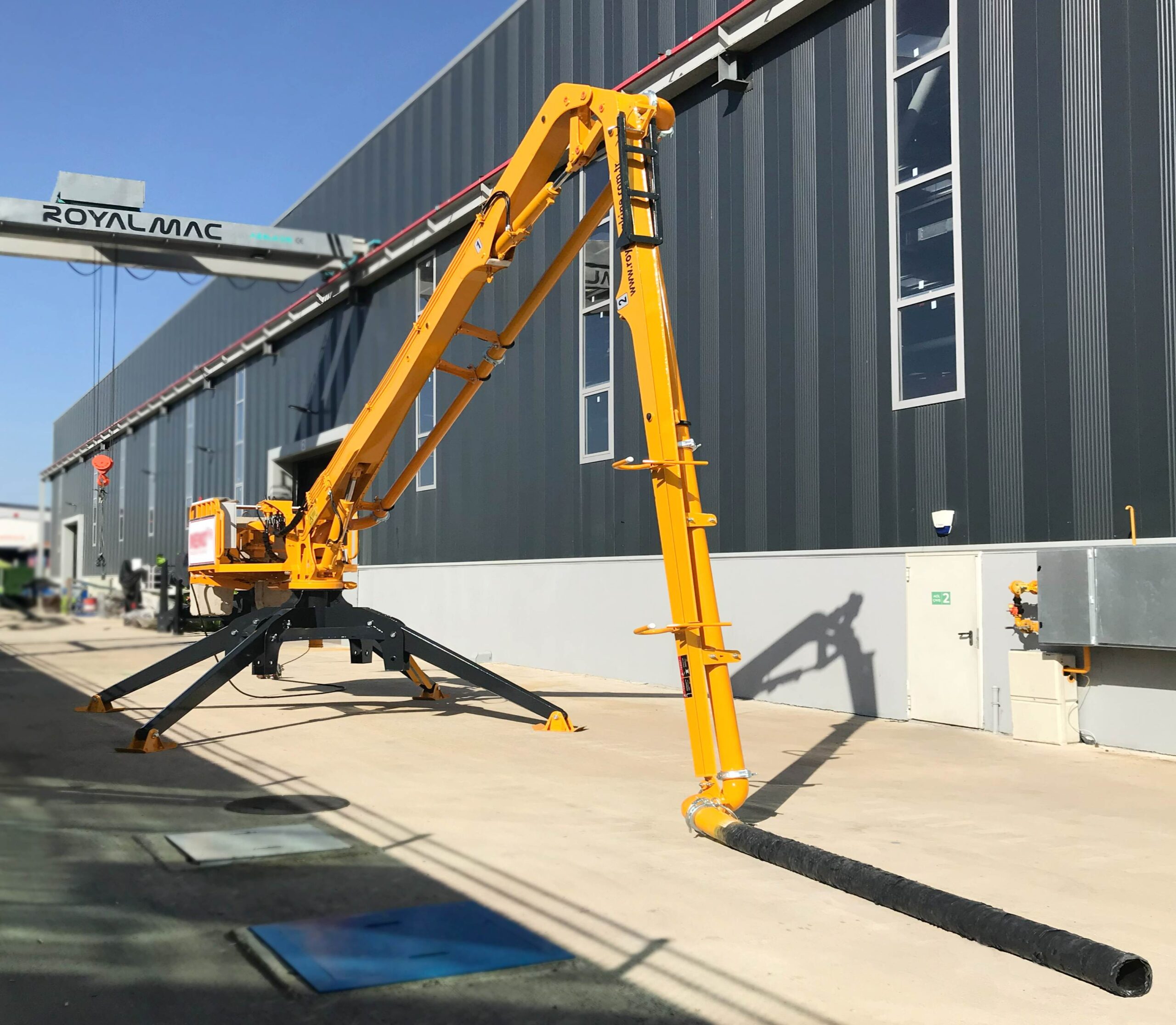 Royalmac HD12 Örümcek Beton Dağıtıcı Bom, sınıfının en pratik ve en hafif modeli olarak öne çıkıyor. 12 metre yatay, 14 metre dikey erişim ve 600 m² çalışma alanı sunan HD12, 2200 kg makine ağırlığı ve toplamda 3500 kg ile iş sahasında kolayca taşınabilir ve kurulumu çok hızlıdır—sökme ve takma gerektirmez, tek parçada rahatça yer değiştirebilir.
